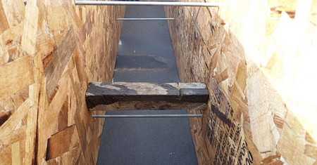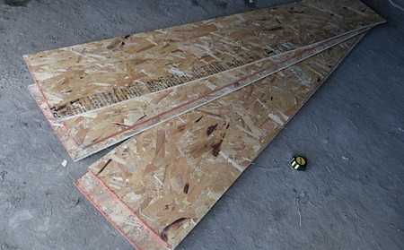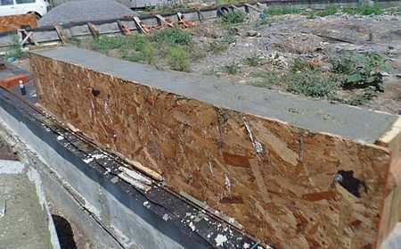 Для создания опалубки следует взять фанеру OSB, ширина которой равна высоте блоков, а длина – на 20 см больше их длины. Одна сторона фанеры зачищается и окрашивается водостойкой краской.
