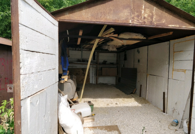 Металлический гараж, облицованный кирпичом снаружи