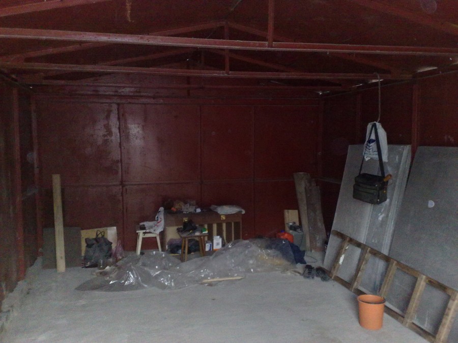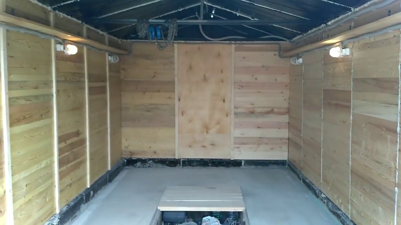 Выше изображение металлического гаража со стенами и потолками, покрытыми изоляцией, что также придает очень чистый вид.