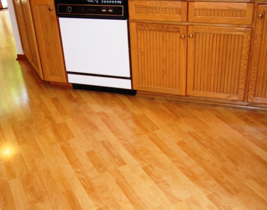 - Ламинат гораздо хуже приспособлен к влажным помещениям, чем плитка и винил. Он может деформироваться и прийти в негодность, если влага попадёт в плиту. На кухне предпочтительно использовать влагостойкие виды ламината – но даже в этом случае вам придется следить, чтобы у вашего пола не было длительного контакта с влагой.