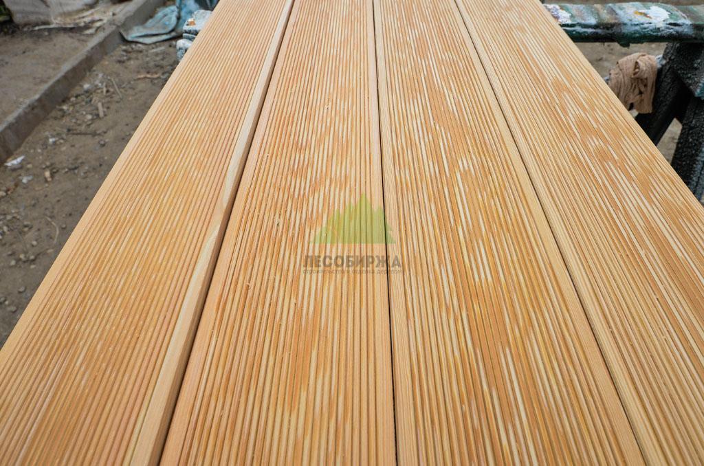Пиломатериалы из лиственницы нередко используются для забора, также можно сделать террасную или палубную доску, чтобы поставить настил под крышей. Это массивный материал без рельефов с закругленными краями. Изделие будет подвергаться перепадам температуры, морозам и плохим погодным условиям, поэтому его необходимо обрабатывать, чтобы продлить срок службы. Что касается размеров доски, все зависит от сферы ее применения, к тому же производители нередко предлагают разные варианты, например, 50х200х6000, 20х95х6000 и 50х150х6000 мм.