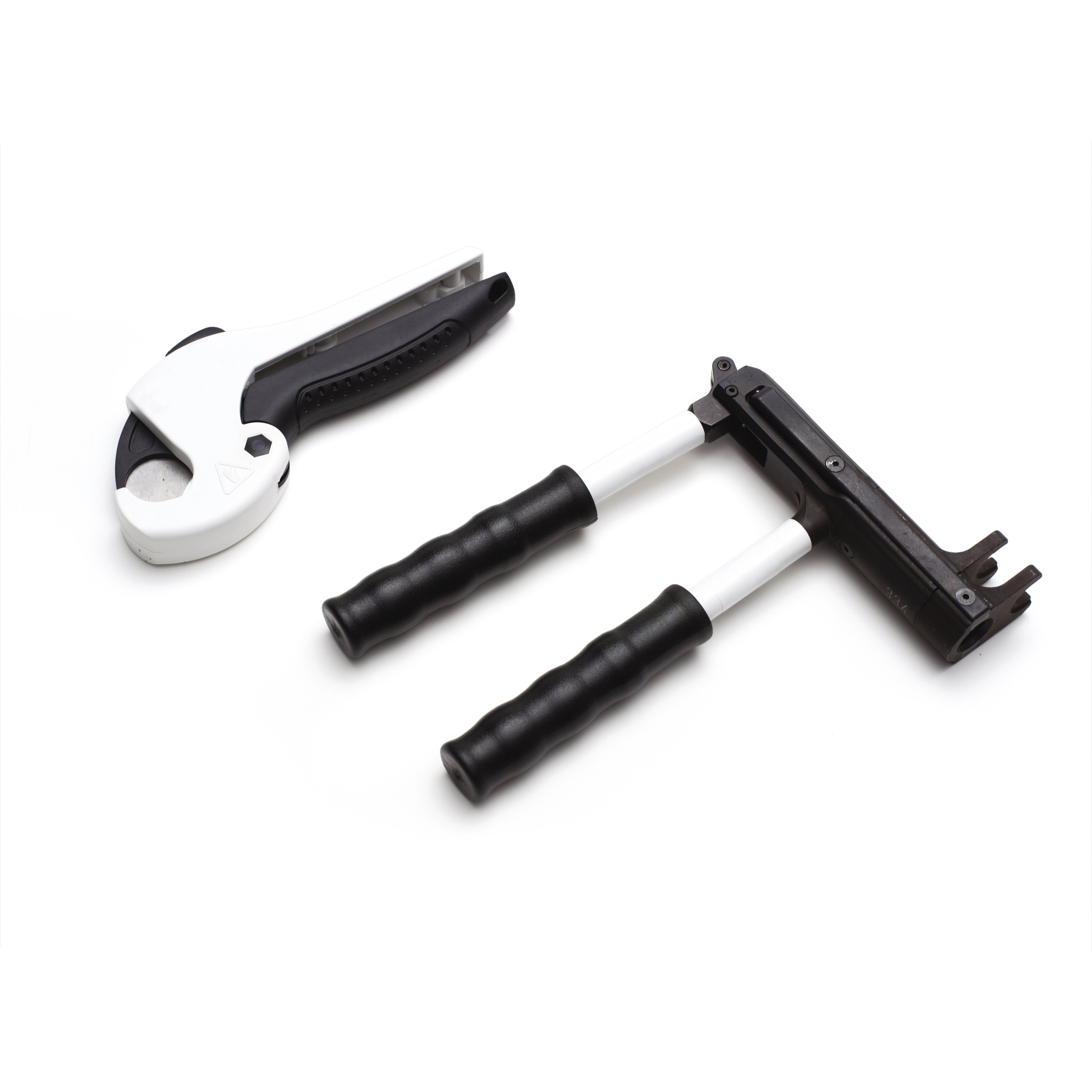 Основной обжимной инструмент можно приобрести в нескольких комплектациях от разных продавцов. Одна популярная модель имеет возможность обжима либо трубка PEX 1/2 дюйма, либо 3/4 дюйма, в то время как в другом используются сменные обжимные головки для работы с трубами PEX любого размера.Инструмент для снятия обжима предназначен для удаления медное обжимное кольцо от трубки и штуцера.Различные конструкции все работать, разрезая медное кольцо. Фитинги можно легко использовать повторно.