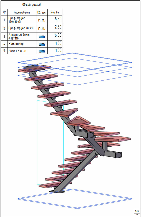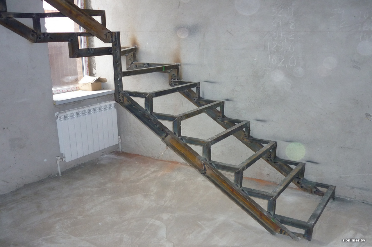 Строительство лестницы начинается с выбора несущего элемента. Мы будем использовать металлический каркас. Он универсален, прочен, позволяет собирать лестницу самостоятельно без посторонней помощи.