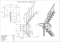Поворот на 90 градусов может выполняться за счёт 3 или 4 ступеней. Минимальная ширина проступи по ходу движения от 20см.