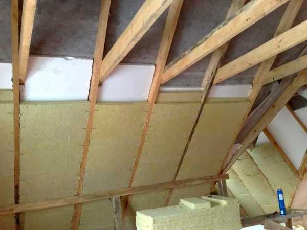 Чаще всего минеральные ваты укладываются в пространство между стропилами. Для увеличения эффективности теплоизоляции периодически используется и полное перекрывание балок и стропил. Требуемый слой таких материалов составляет 150 – 200 мм.