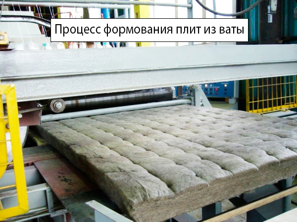 Для этого горная порода должна быть измельчена и расплавлена. Температура в плавильной печи весьма высока – 1500 градусов, не меньше. Дальше расплав поступает на специальные барабаны, где вращается, обдуваемый воздушной струей. В итоге получаются волокна, толщина которых не более 7 микрон, а длина – не более 5 сантиметров. Чтобы сделать волокна упругими и прочными, добавляется особый состав для их связывания. Затем вату нагревают до 300 градусов, пропуская через пресс 2 раза.