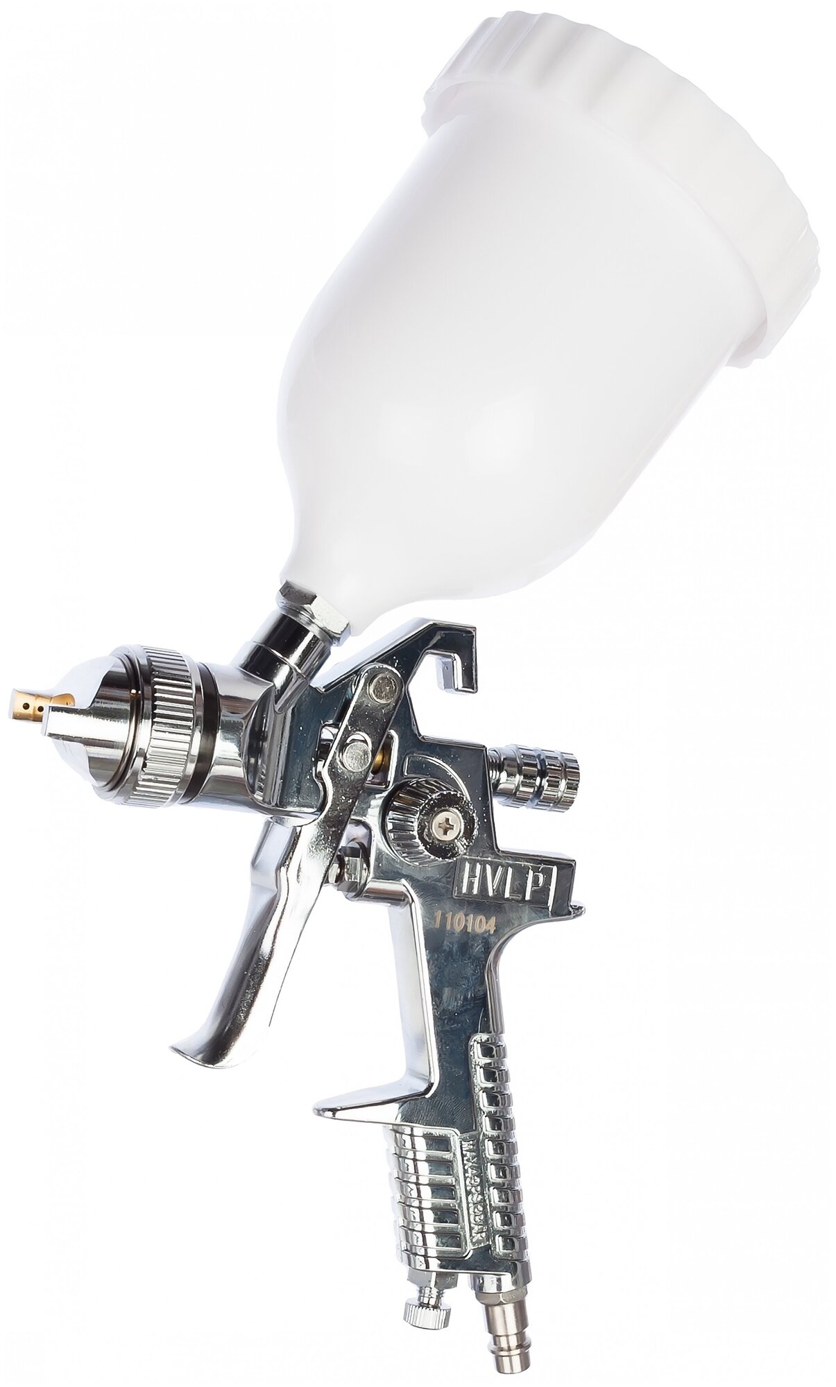 Краскопульт LVLP Краскораспылитель INTERTOOL LVLP 1,3 мм PT-0130Эта модификация — определённый компромисс между 2 вышеописанными разновидностями. Конструкторы постарались избавиться от недостатков, присущих каждой из них, оставив лишь достоинства. Поэтому есть смысл говорить о перспективности именно этой группы устройств.