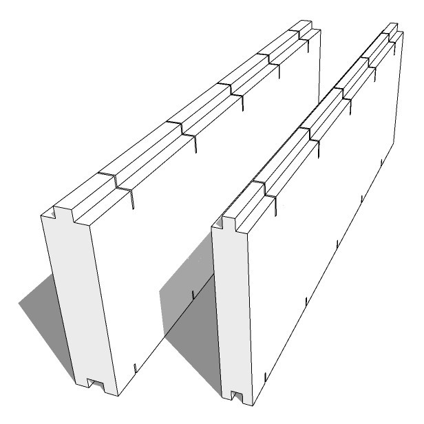 Данные конструкции (короба) изготавливаются из полимерных панелей, сделанных из поливинилхлорида с высокой ударной вязкостью. Короба не требуют подгонки и имеют простые и надёжные крепления. Через специальные отверстия в них заливается быстротвердеющий бетон, обеспечивающий прочность и устойчивость дома. Отделка загородного дома построенного по такой технологии традиционна и не отличается какими-то сверхновыми возможностями.