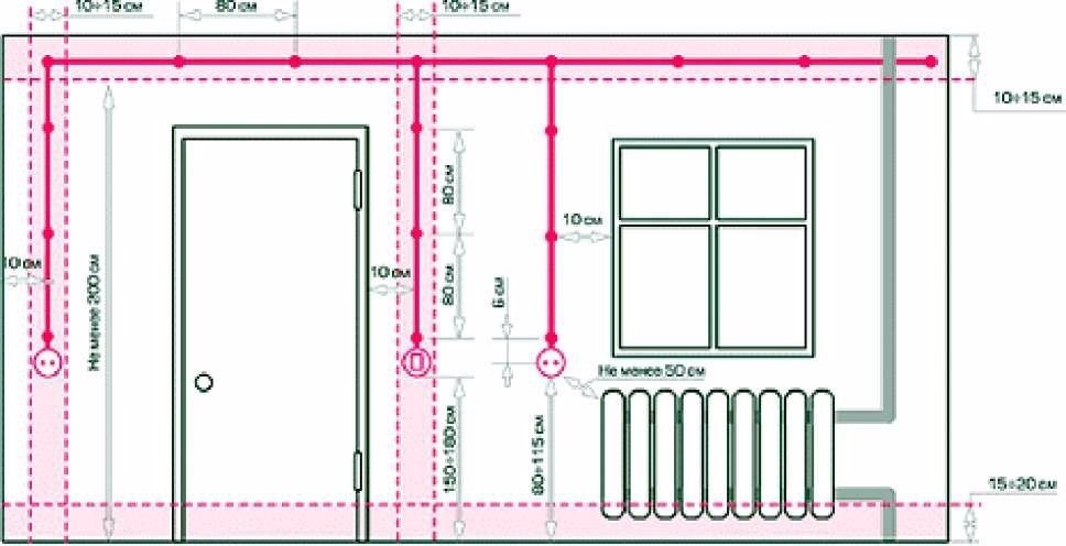 На практике розетки устанавливают на высоте от 20 до 100 см (в зависимости от их типа и частоты использования), а выключатели — не выше 100 см от пола.