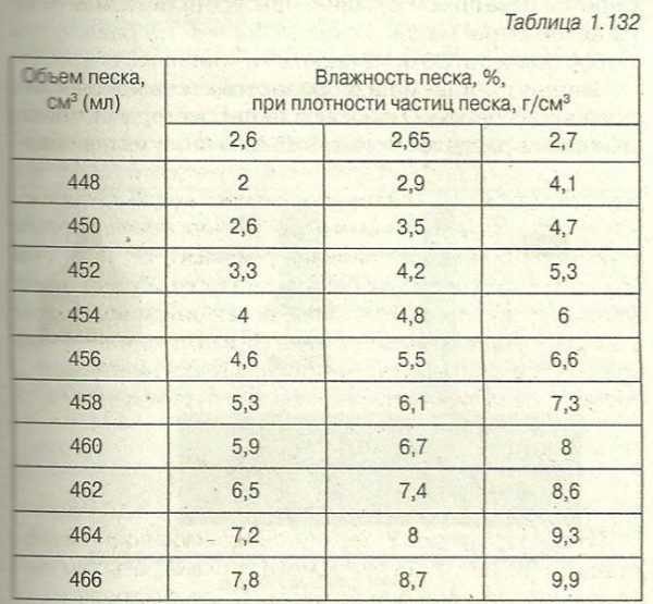 Насыпная плотность песка в состоянии естественной влажности, значения по ГОСТ