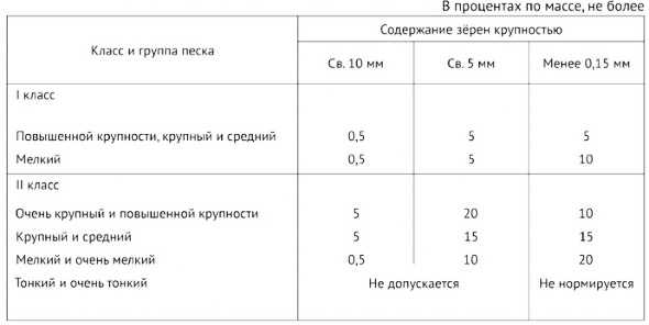 1. Величина зерна (модуль крупности). Песок представляет собой смесь частиц размером от 0,14 до 5 мм, образовавшихся естественным путем при разрушении горных пород. Чем меньше размер зерна и однороднее состав, тем плотнее песок. Крупно- и среднезернистый материал используют для изготовления бетона, мелкозернистый – для цементных растворов, мелкофракционный (пылевидный) – для строительных мелкодисперсных смесей.