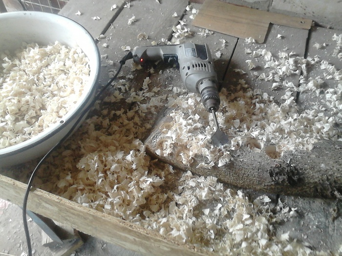 Все компоненты смешиваются, и обрабатываются борной кислотой или любым антисептиком для дерева. Затем добавляют около 10 ведер воды (на 10 ведер опилок). После замешивания, смесь нужно крепко сжать в руке, а затем посмотреть, чтобы она не рассыпалась.