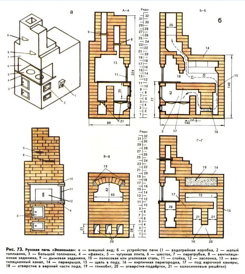 — печь должна обладать простой конструкцией, для облегчения кладки.