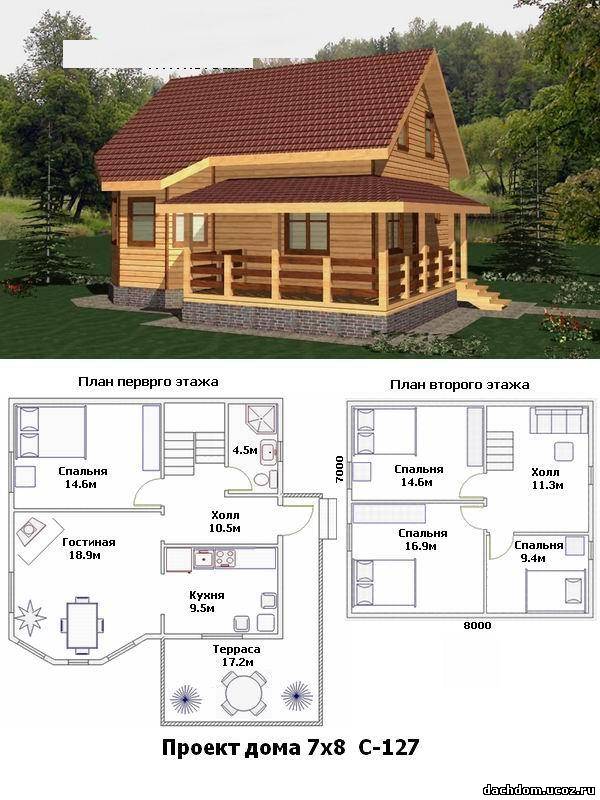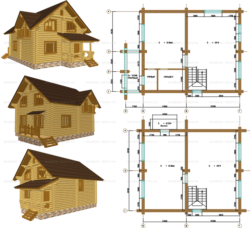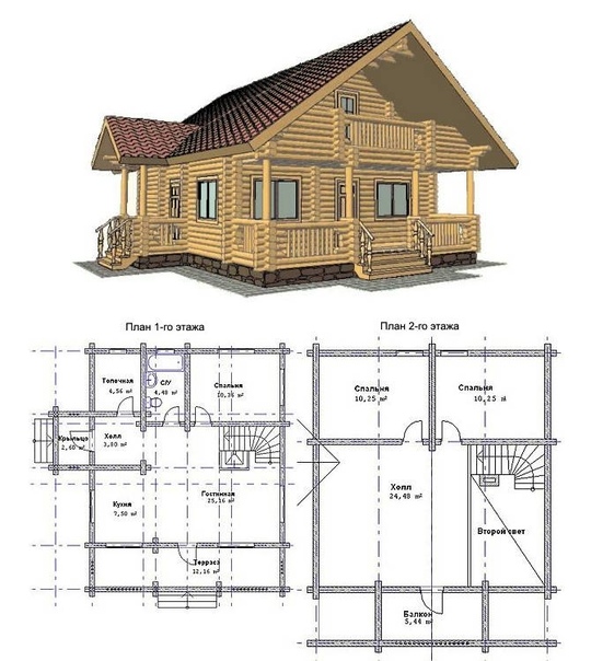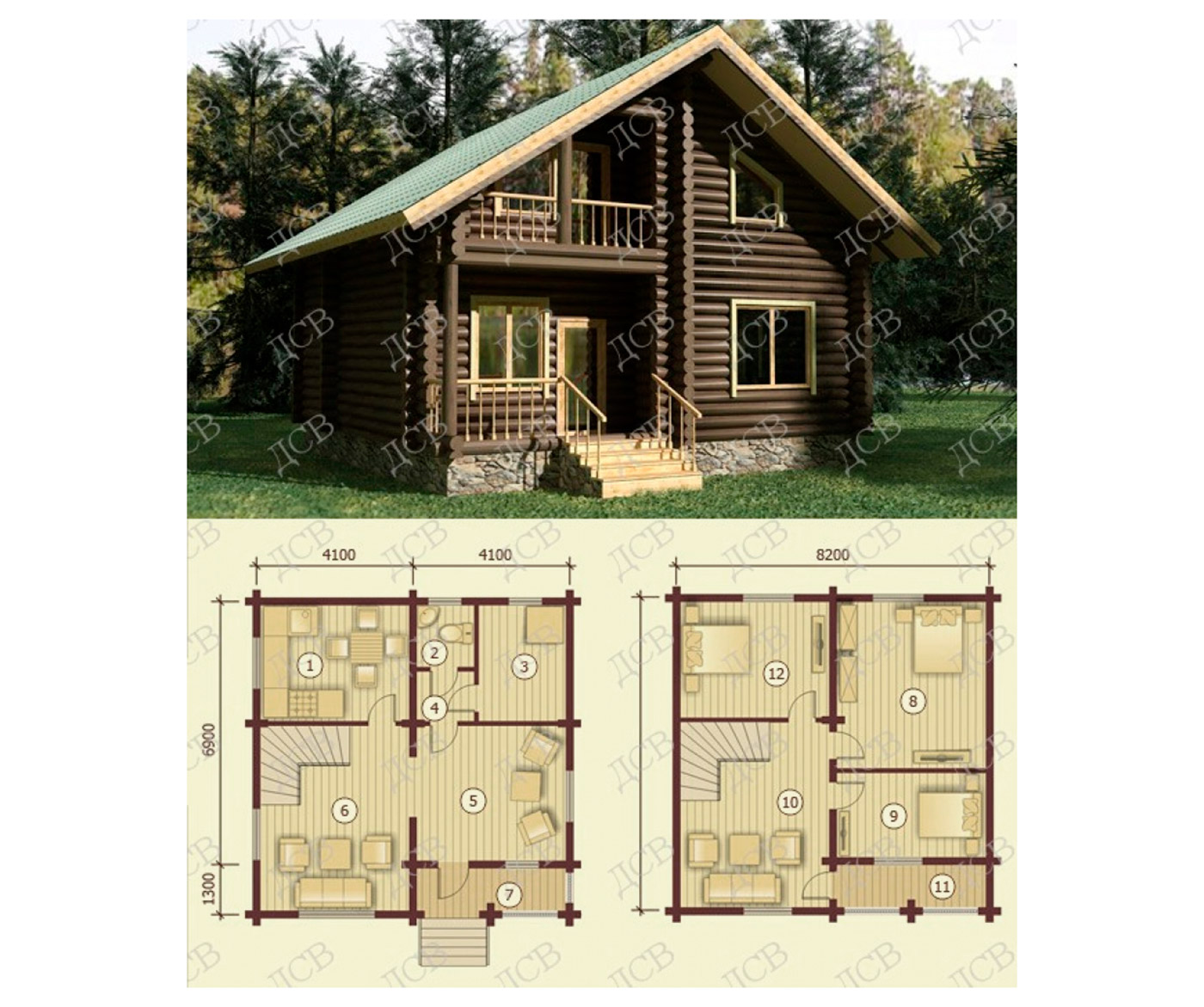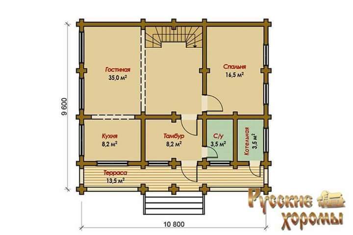 Частыми вариантами планировки являются дома 10х10, 6х6, 8х8 кв. м.