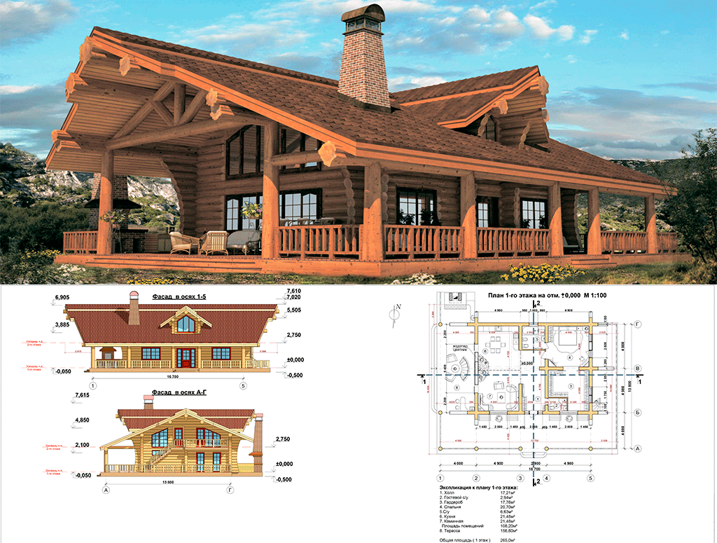 Лучшие готовые проекты деревянных домов площадью от 150 м² до 249 м². Каталог.