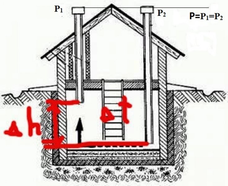 Подобное устройство работает благодаря тому, что температура в овощной яме и снаружи различается. Но такая вытяжка перестанет работать в теплое время года, когда температура начинает выравниваться. С другой стороны, зимой вытяжка ямы закупоривается снегом и инеем, и с этим трудно что-то сделать (трубу придется дополнительно прогревать). Именно поэтому устройство естественной вентиляции рекомендовано для небольших гаражей, в которых владелец будет периодически осматривать и прочищать трубы, а также утеплять их зимой.