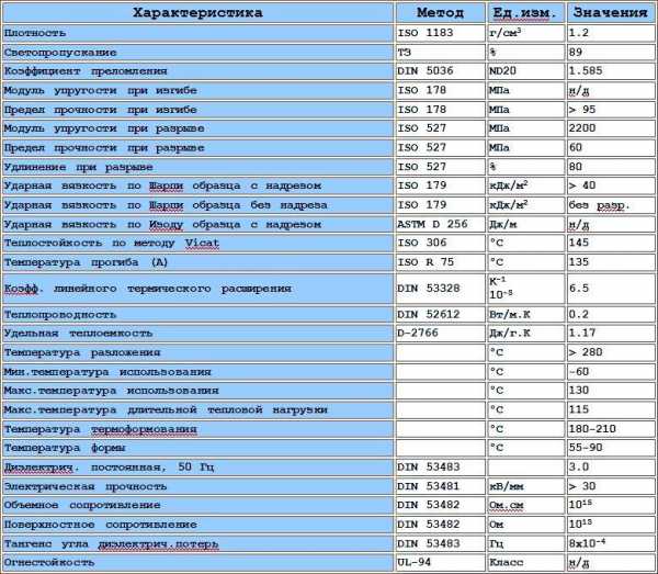Можно также учесть, что он поступает в продажу в виде сотовых и монолитных листов, а это существенно сказывается на многих технических параметрах.