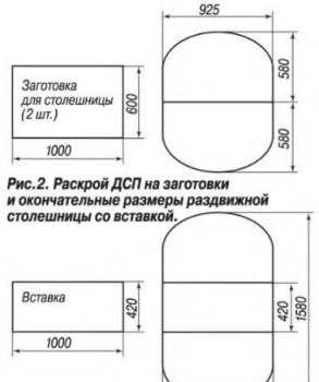 Раскрой ДСП на заготовки и размеры раздвижной столешницы со вставкой.