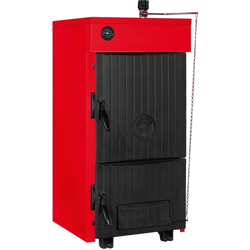 Отопительные котлы на твёрдом топливе выделяются от своих собратьев, работающих на иных видах топлива, основательностью. Меньшая теплоёмкость твёрдого топлива если сравнивать с газом или жидким топливом, просит большого размера топки.