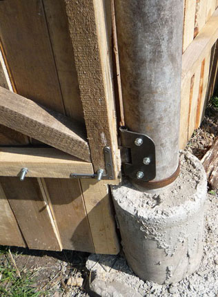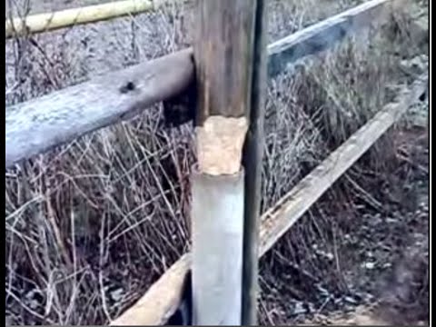 Изначальное преимущество деревянных столбов — доступность и низкая стоимость, Русь то была бревенчатой, к сожалению, во многих регионах утрачена. И хотя срок службы опор из дерева, по сравнению с другими столбиками, меньше, простота установки и монтажа по ним зашивки, заставляет нас в первую очередь вспоминать о них. С кругляка снимают кору, зарываемую в землю часть септируют доступным способом, и обустроив ямку устанавливают, немного проворачивая и добиваясь этим наилучшей вертикальности. При малой парусности забора, например, ограда из сетки рабицы, такой забор, да на дубовых опорах, простоит не одно десятилетие, не требуя ухода и ремонта. Неплохо стоит в земле и хвойная древесина, конечно уступая дубу, а вот береза и другие лиственные породы более 3х лет не выдерживают.