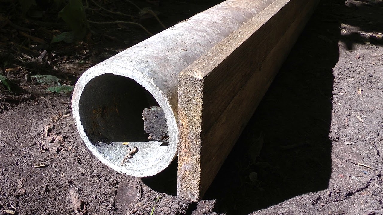 Если залить скважину бетоном, то еще более велика вероятность выталкивания изделия грунтом. Бороться с этим можно следующим образом: слой бетона не превышает 30 см, далее следует плотный слой песка. Перед установкой столба в землю вбиваются арматурные прутья для создания своего рода защитного каркаса, а вовнутрь трубы также обязательно заливается бетон. Кстати, такая технология также может уберечь от попадания вовнутрь дождевой воды и, как следствие, растрескивания асбестоцементной трубы. Подробная и наглядная технология заливки – на видео.