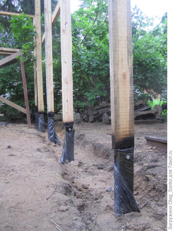 Основание либо заливается бетоном, либо поверхность скважины нуждается в гидроизоляции во избежание смешивания песка и глины, так как такой грунт способен вытолкнуть столб на поверхность.