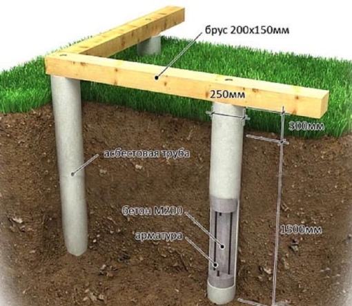 Отличными опорами могут служить асбестоцементные трубы, так как, в отличие от древесины, они не гниют, имеют правильную геометрию – удобно выставлять, не требуют специальной техники для монтажа, обеспечивая при этом необходимую прочность.