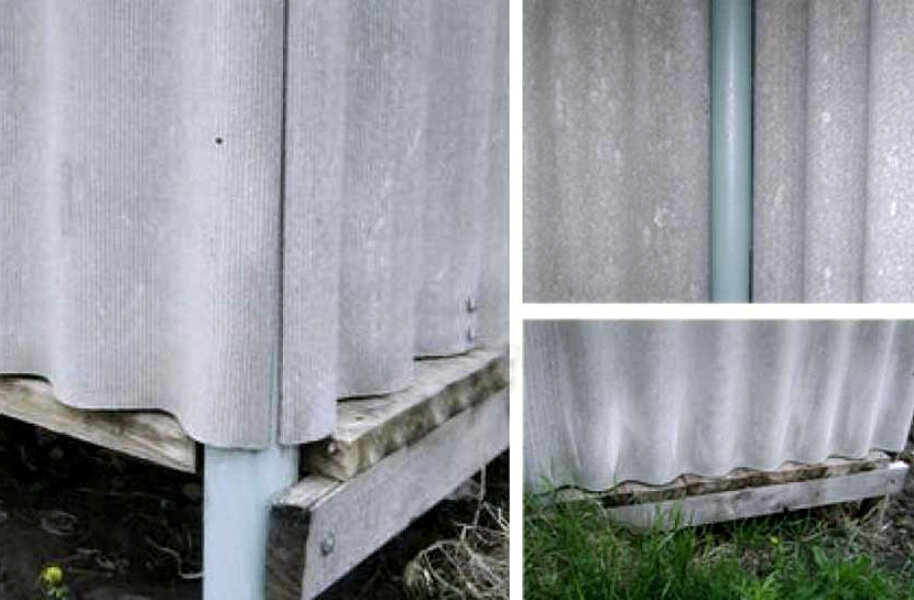 Опасность от асбеста возникает, если образуется повышенное количество пыли и эта пыль вдыхается. Поэтому при очистке кусков фибры держите материал влажным, но не заливаемым водой; и свести к минимуму дальнейшее разрушение волокнистых листов или действия, вызывающие выделение пыли.
