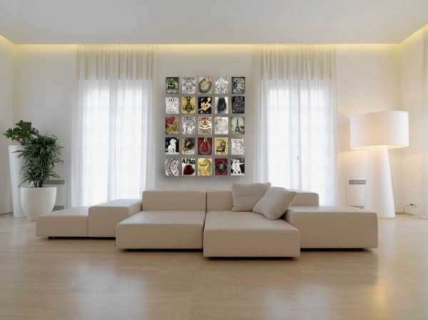 Рассматривая диван, можно сказать, что без него не может обойтись ни одна гостиная, поэтому пространство над ним нужно заполнить только самыми необходимыми вещами.